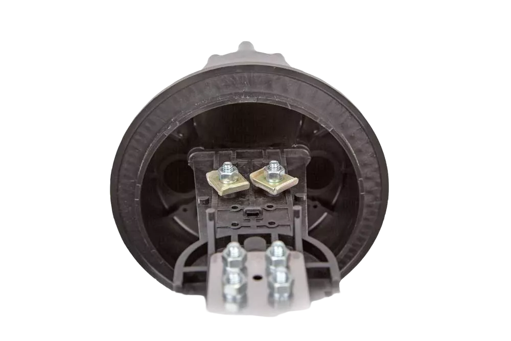 Овальный патрубок муфты может использоваться для одного из перечисленных случаев: 1) ввода 4-х тонких кабелей до 10 мм или 2) ввода транзитной петли кабеля или 3) ввода двух кабелей диаметром до 25 мм. Во втором и третьем случаях для герметизации необходимо дополнительно приобрести «Ввод №6».