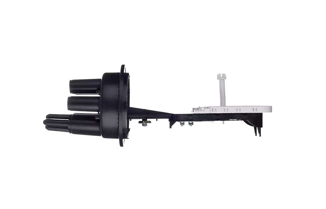 Предназначена для монтажа любого оптического кабеля (кроме подводных). Достигается это за счет использования специальных кабельных вводов, каждый из которых в свою очередь охватывает определенную группу кабелей. В муфте предусмотрен овальный ввод для транзитной петли оптических модулей без разрезания. Выкладка петли модулей осуществляется на лотке с противоположной стороны от кассет.