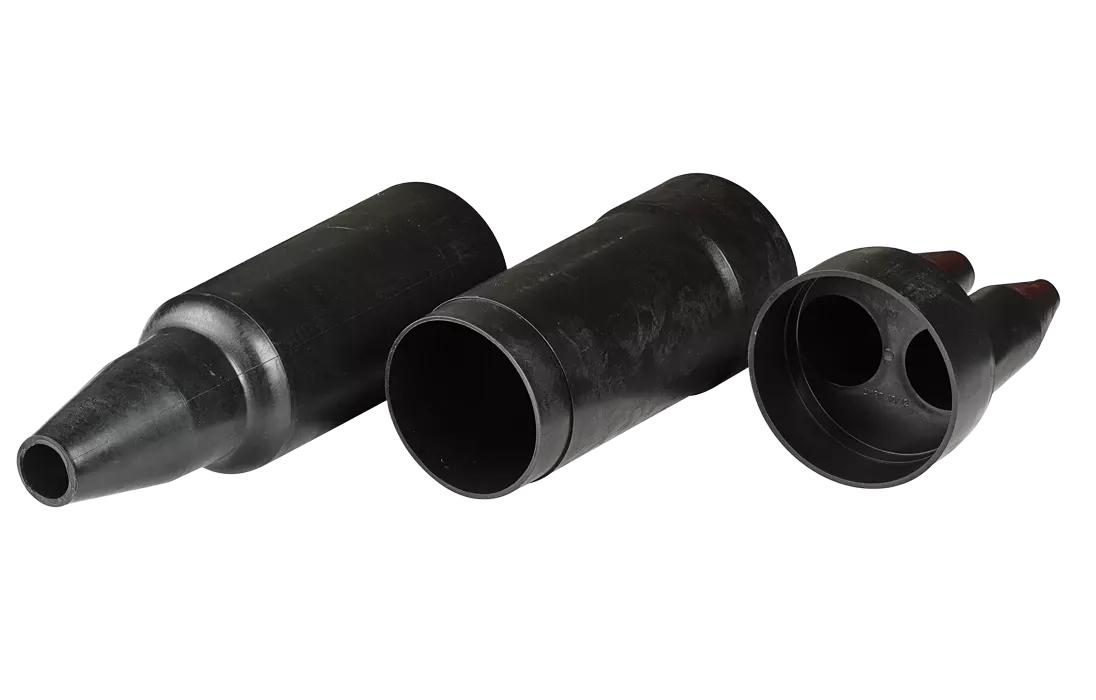 Муфты МРП представляют собой полиэтиленовые корпуса определенной формы. Дополнительно следует заказывать материалы для выполнения всех монтажных операций – от сращивания жил до герметизации муфт.