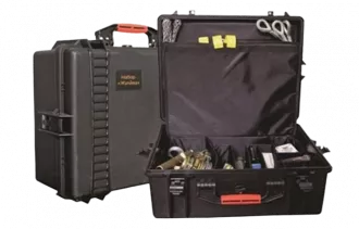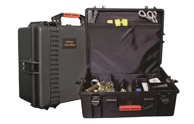 Инструменты размещены в удобном, герметичном и ударопрочном кейсе с множеством отделений, что позволяет сохранять инструмент и входящие в набор электронные приборы в экстремальных полевых условиях.