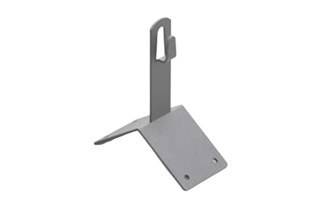 Угловой коньковый зажим применяется для фиксации молниеприемной сетки на остром коньке кровли при помощи саморезов. Проводник крепится безвинтовым зажимом при помощи плоскогубцев. Изготовлен из горячеоцинкованной стали.