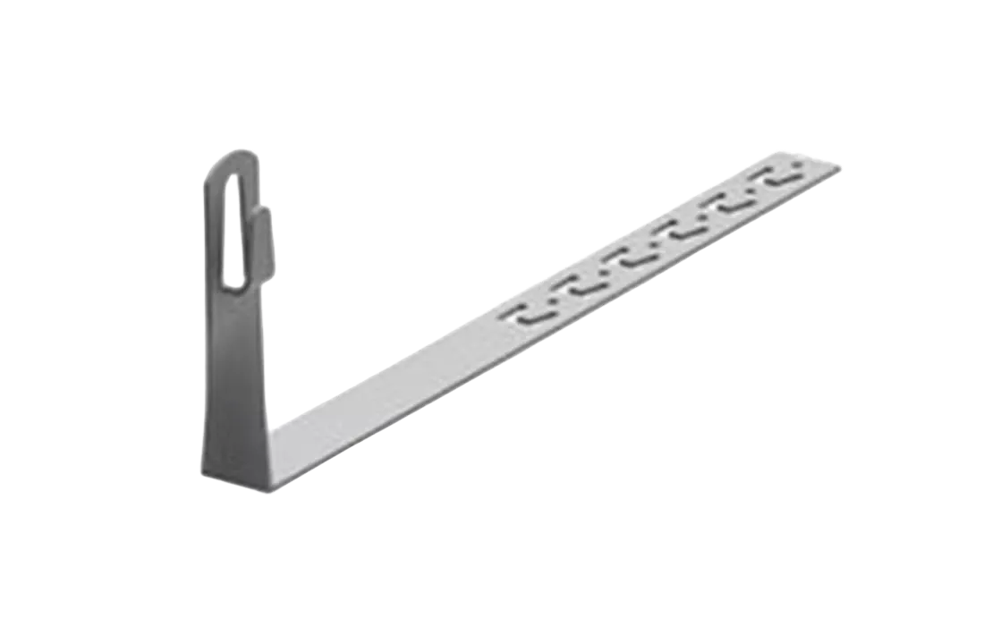 Скрученный держатель под черепицу применяется для крепления молниеприемной сетки на шиферных и черепичных кровлях. Проводник крепится безвинтовым зажимом с помощью плоскогубцев. Длина – 330 мм, изготовлен из горячеоцинкованной стали.