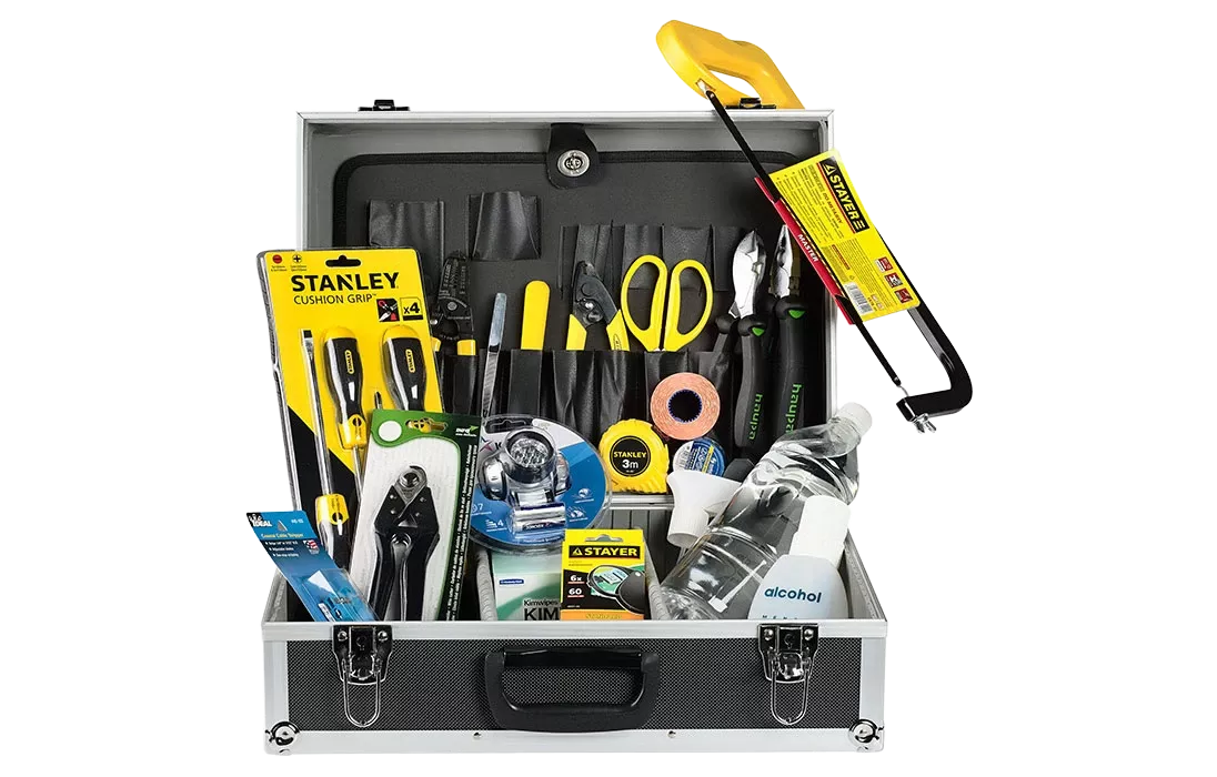 Предназначен для разделки и монтажа оптического кабеля (ВОЛС). Он укомплектован необходимыми для этих целей инструментами Haupa и других ведущих производителей (вплоть до лупы, фонарика и салфеток для протирания волокна). Набор пригоден для разделки подвесных, городских и магистрально-зоновых волоконно-оптических кабелей при монтаже оптических линий связи. Имея в своем распоряжении НИМ-25, можно работать не только с легким универсальным внутриобъектовым кабелем, но и с бронированным кабелем, предназначенным для внешней прокладки. Все инструменты удобно распределены по специальным отделениям и карманам жесткого корпуса, так что надежное хранение и быстрый доступ к ним гарантированы.