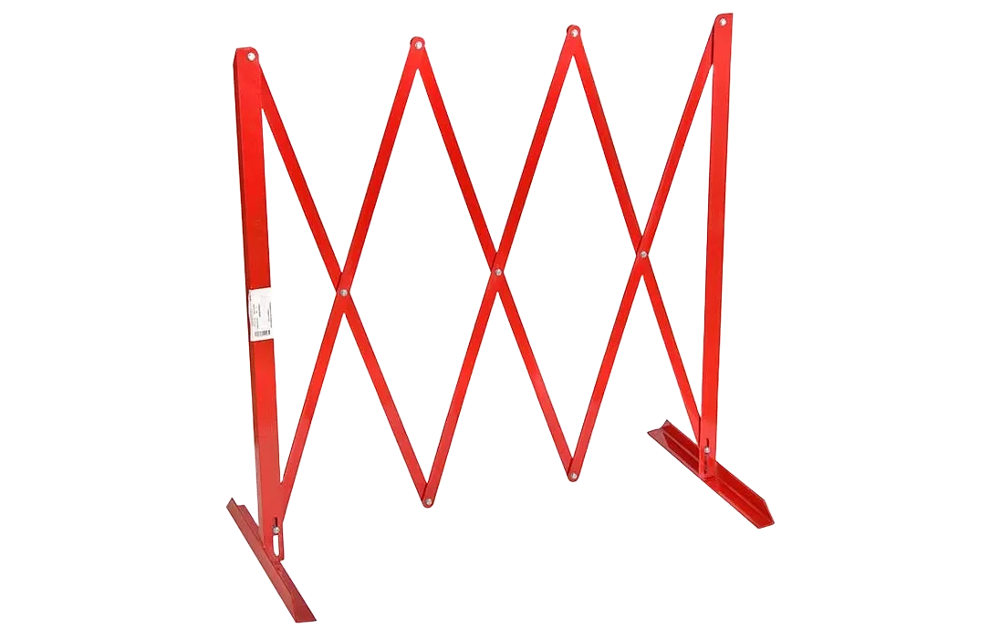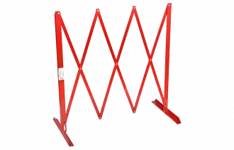 Изготовлено из стали. Покрыто эмалью красного цвета. В сложенном виде ограждение имеет ширину 140 мм, а в разобранном – 1440 мм. Малые габариты и вес позволяют перевозить складное ограждение в легковом автомобиле, а также переносить его в руках на большие расстояния.