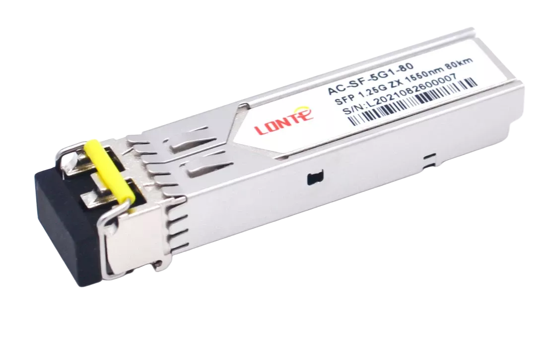 Двухволоконный оптический модуль с форм-фактором SFP для 1G Ethernet, соответствует стандарту 1000BASE-ZX. Предназначен для работы в одномодовом оптическом волокне (Single-mode fiber, SMF), максимальная дальность 80 км, LC коннектор, рабочая длина волны Tx: 1550 нм.