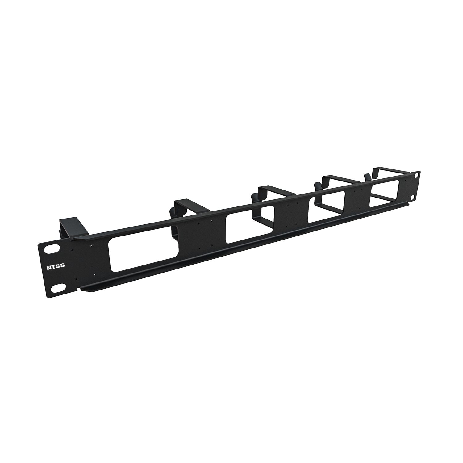 Организатор кабельный горизонтальный NTSS, крепление 19 1U с окошками, 5 колец глубиной 65мм, металл, черный RAL 9005
