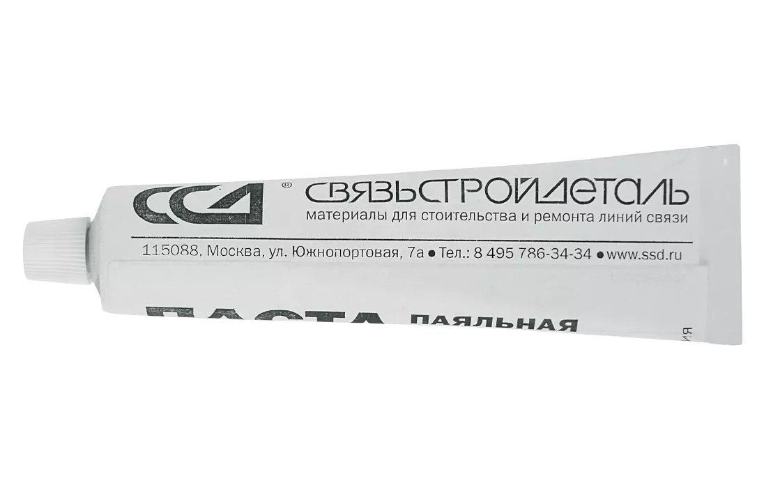 Используется в качестве флюса при залуживании стальных лент брони кабелей связи, а также для припайки опорных втулок к экранным лентам малогабаритных коаксиальных пар 1,2/4,6 в кабелях типа МКТ-4 и КМ-8/6 при монтаже муфт.