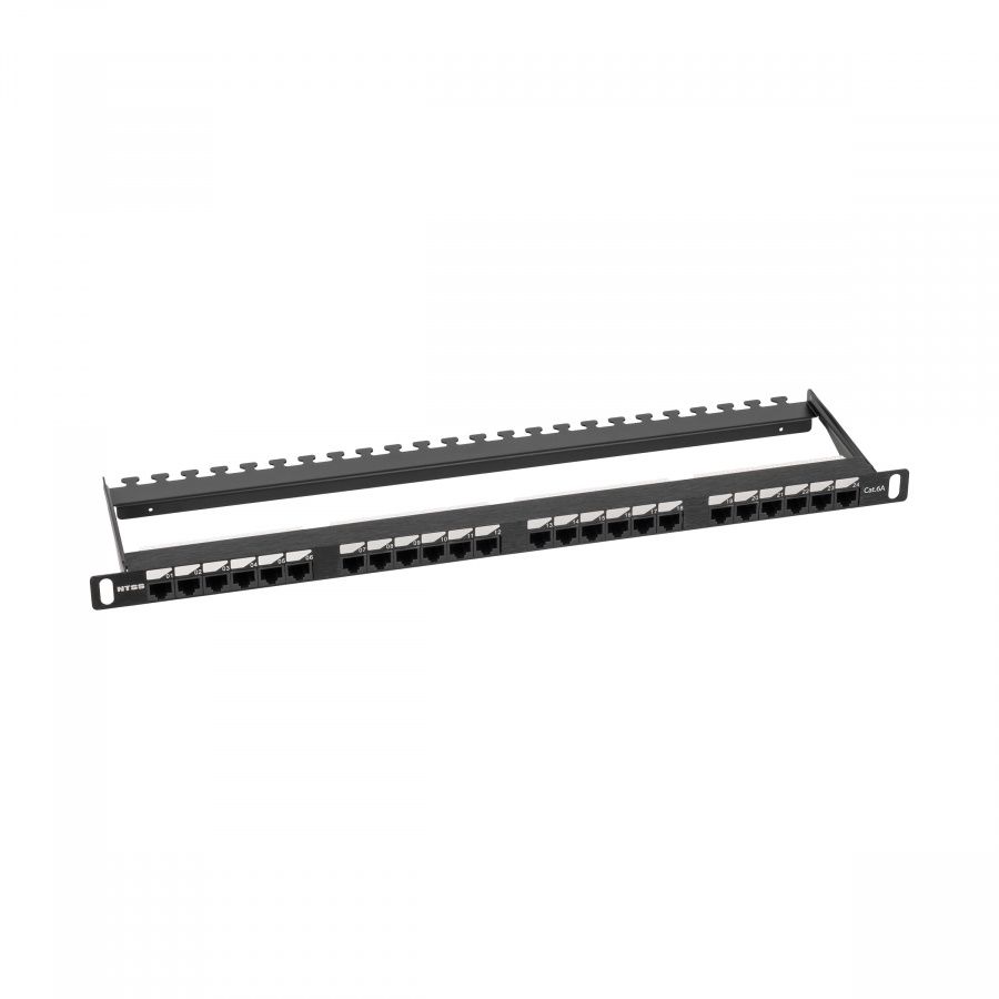 Патч-панель NTSS PREMIUM 0.5U 24 порта RJ45 UTP cat.6A, Dual IDC с задним кабельным органайзером