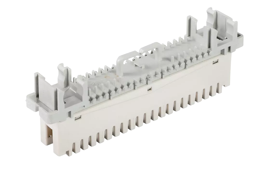 Представляет собой пластиковую конструкцию, у которой с одной стороны подключается десятипарный кабель, а с другой стороны медные пары разводятся на конкретных абонентов. В конструкции размыкаемого плинта предусмотрена возможность установки грозозащиты.