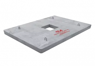 Представляют собой прямоугольные железобетонные плиты с наличием центрально расположенного дренажного отверстия. Для удобства монтажа плиты имеют 4 строповочных петли, которые расположены по периметру.