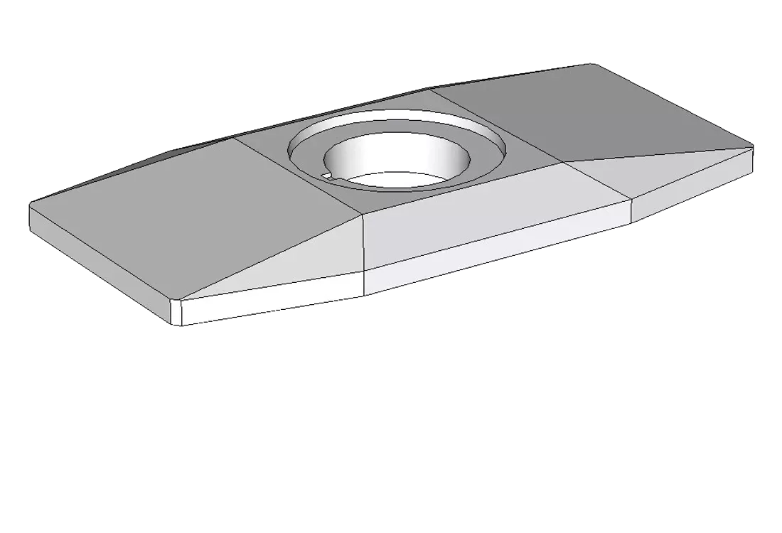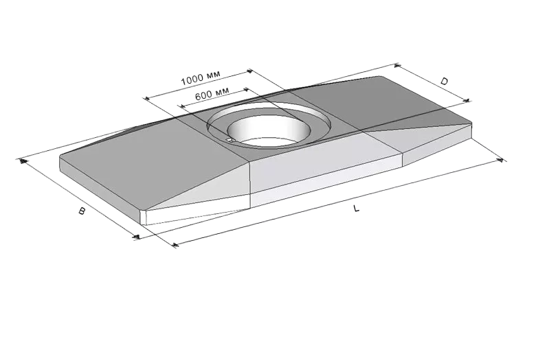Плита имеет восьмигранную форму усеченной пирамиды, в центре которой расположено круглое отверстие диаметром 600 мм для формирования горловины с люком. Плита рассчитана на нормативную нагрузку «НК-80», то есть может размещаться под проезжей частью.