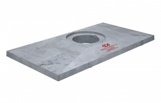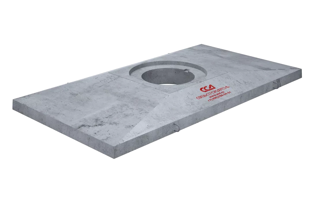 Плита разгрузочная железобетонная имеет прямоугольную форму усеченной пирамиды, в центре которой расположено круглое отверстие диаметром 600 мм для формирования горловины с люком.