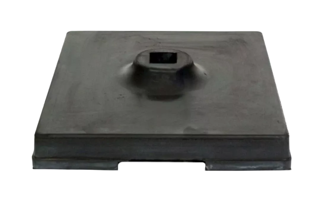 Имеет квадратную форму, в центре которой имеется паз для фиксации элемента ограждения. Самопроизвольное падение ограждения из подставки исключается. Не требуется специальной подготовки для монтажа.