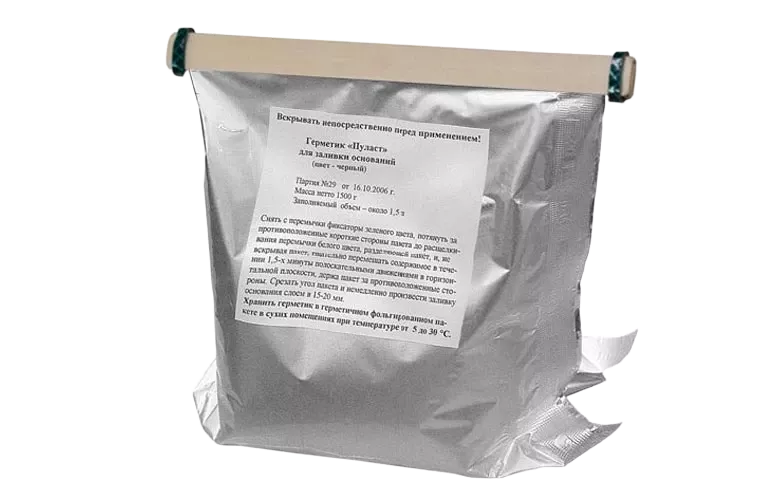 Состоит из двух компонентов – А и Б. Компоненты герметика упакованы в единый фольгированный пластиковый пакет, разделенный съемной перемычкой на две секции. Герметик имеет черный цвет и обладает хорошей текучестью при температурах не ниже -10 °С. Заливка герметика производится при температуре окружающей среды от -10 до +45 °С.