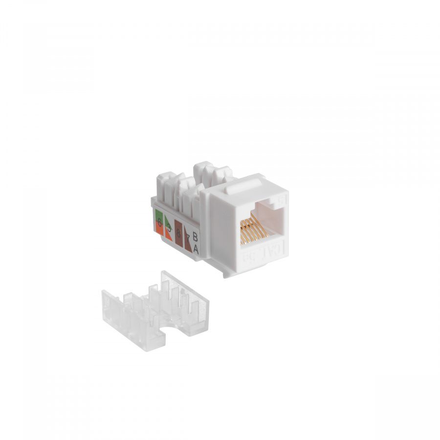 Неэкранированный розеточный модуль типа Keystone RJ45 категории 5е 90° предназначен для монтажа в настенные розетки NTSS Premium или в суппорт розетки в короб. Контакты ножей IDC расположены под 90 градусов относительно плоскости кейстоуна. Для заделки контактов используются специальные ножи 110-го типа. Контакты защищаются специально крышкой.