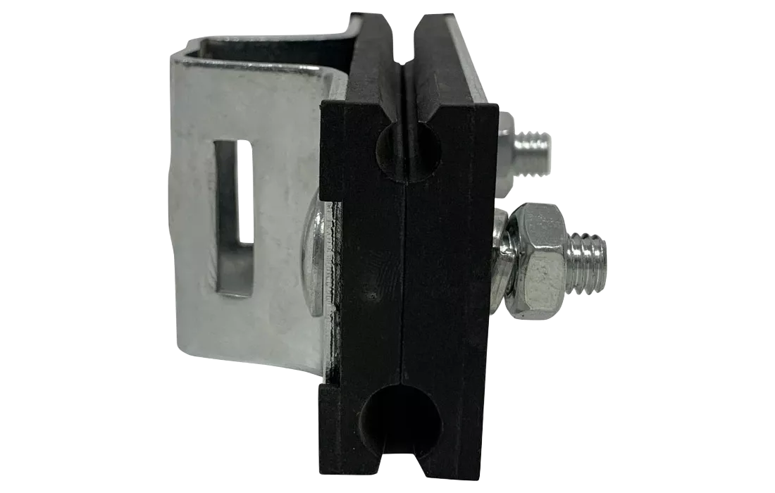 Поддерживающий зажим предназначен для промежуточной подвески 8-образного оптического кабеля с вынесенным силовым элементом (тросом), диаметром от 4 до 9 мм (диаметр троса по изоляции) на опорах (стойках) всех типов. Для крепления кабеля и троса в корпусе зажима предусмотрены две канавки под разный диаметр троса.