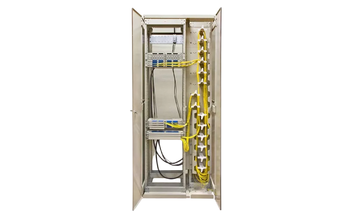 Решение ВОКС-Ф (волоконно-оптическая коммутационная система, фронтальный доступ к кроссовому полю) базируется на специализированном телекоммуникационном шкафе, состоящем из двух секций размерности 10'' и 19'' с полезной высотой 42U или 45U.