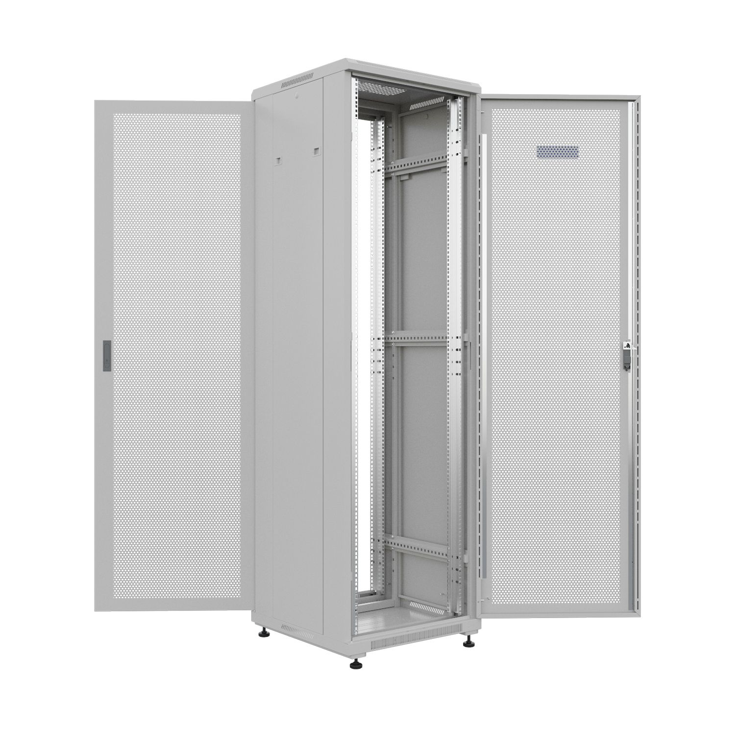 Шкаф напольный универсальный серверный NTSS R 18U 600х600мм, 4 профиля 19, двери перфорированная и перфорированная, боковые стенки съемные, регулируемые опоры, разобранный, серый RAL 7035