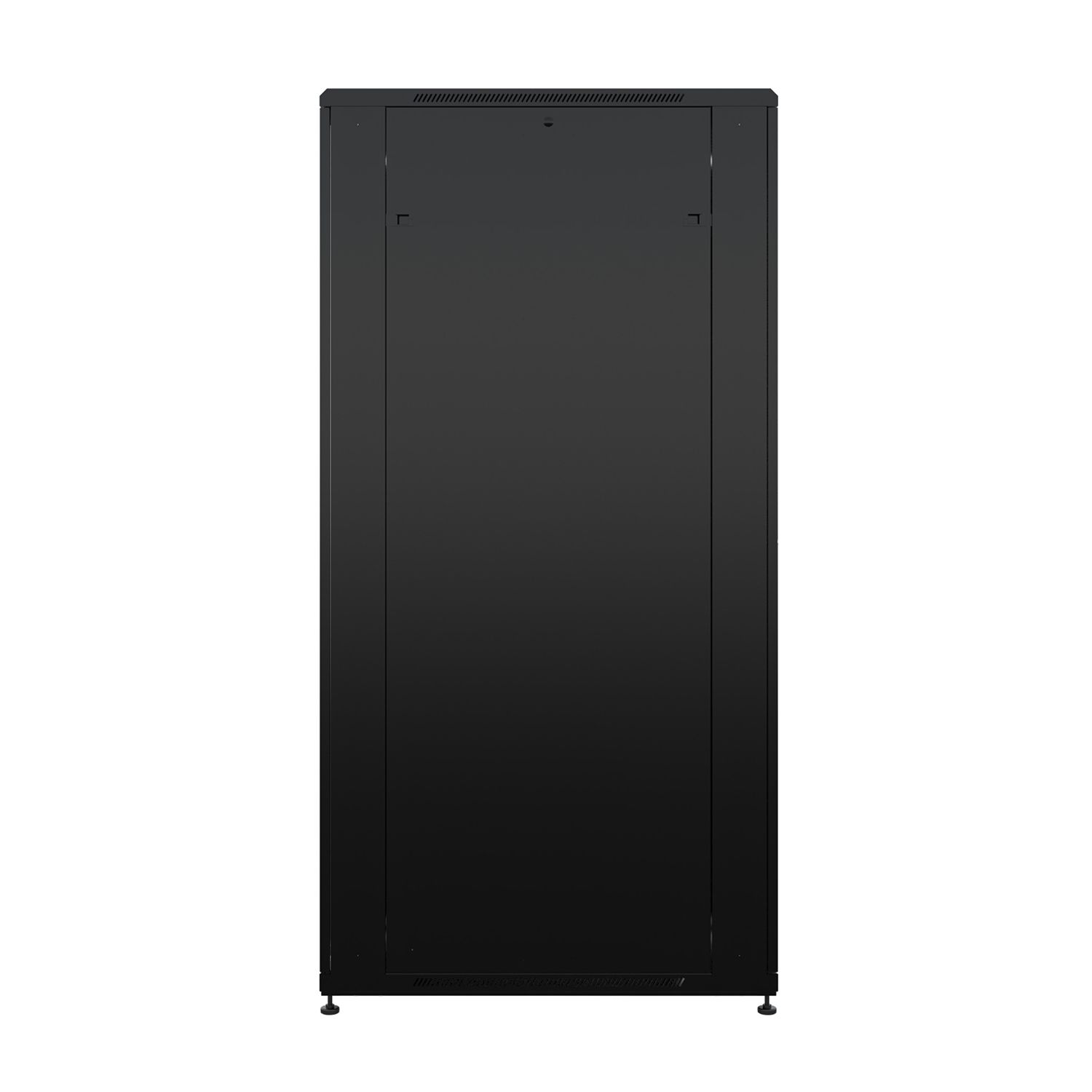 Передняя дверь со стеклом и задняя глухая металлическая ограничивает наполнение шкафа оборудованием с малым тепловыделением до нескольких киловатт.
