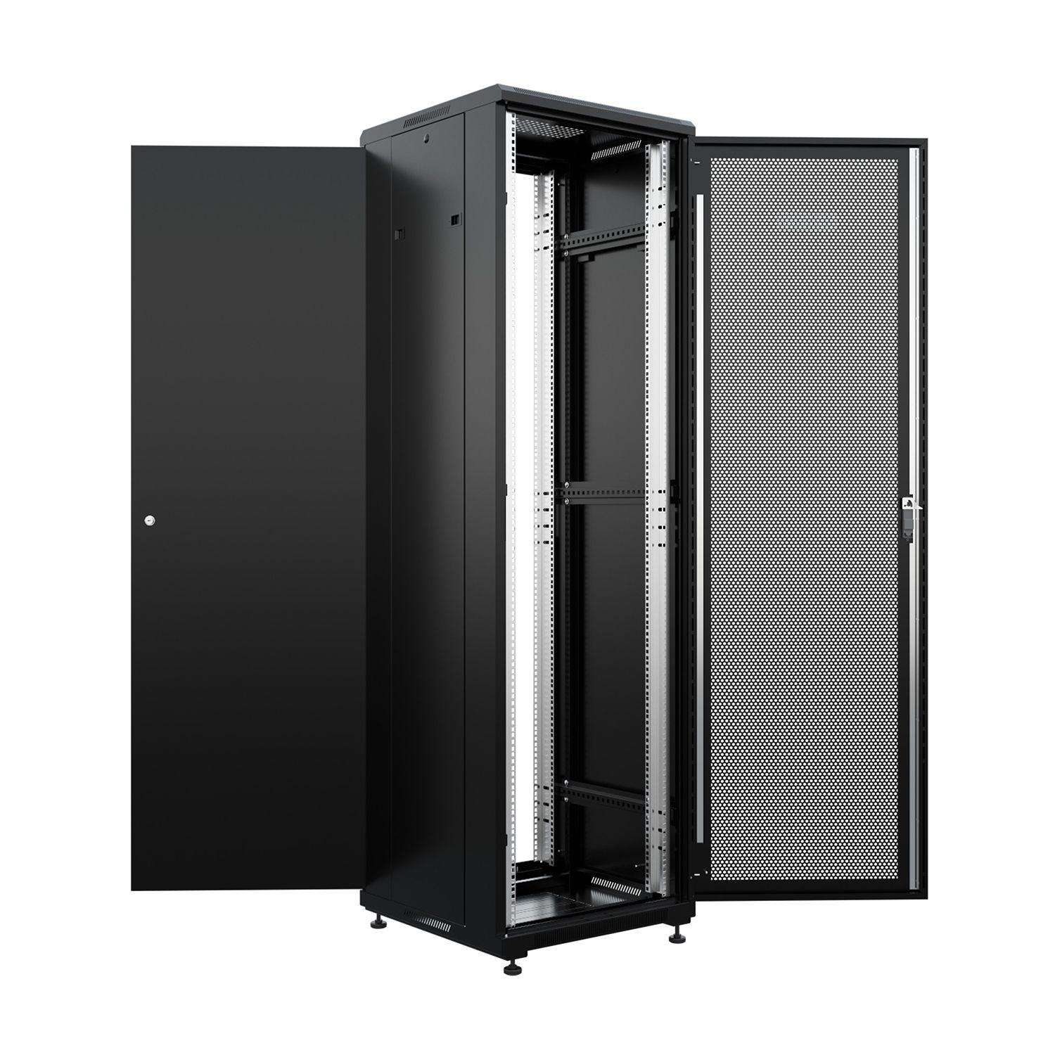 Шкаф напольный универсальный серверный NTSS R 42U 600х600мм, 4 профиля 19, двери перфорированная и сплошная металл, боковые стенки съемные, регулируемые опоры, разобранный, черный RAL 9005