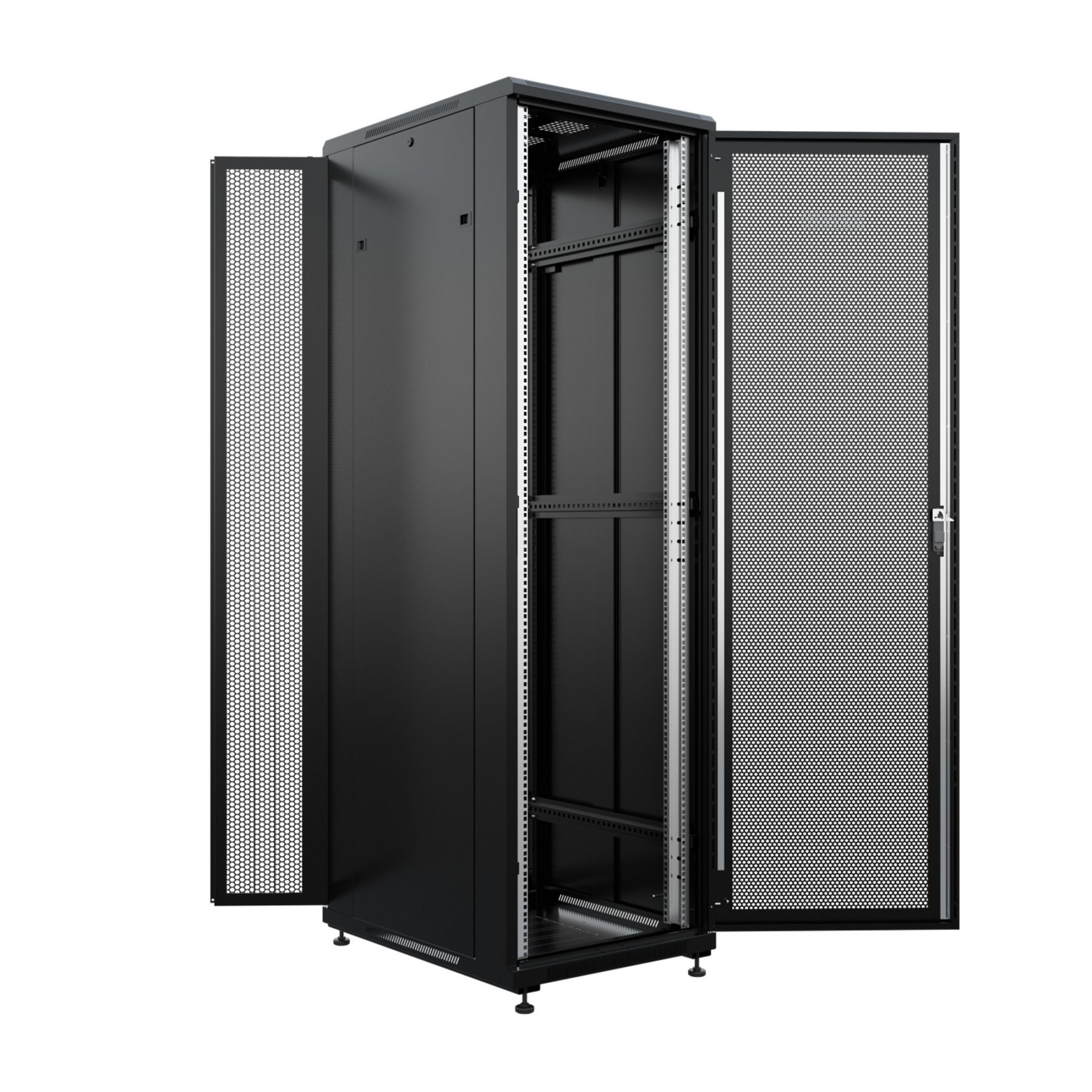 Шкаф напольный универсальный серверный NTSS R 42U 800х800мм, 4 профиля 19, двери перфорированная и перфорированная двухстворчатая, боковые стенки съемные, регулируемые опоры, разобранный, черный RAL 9005