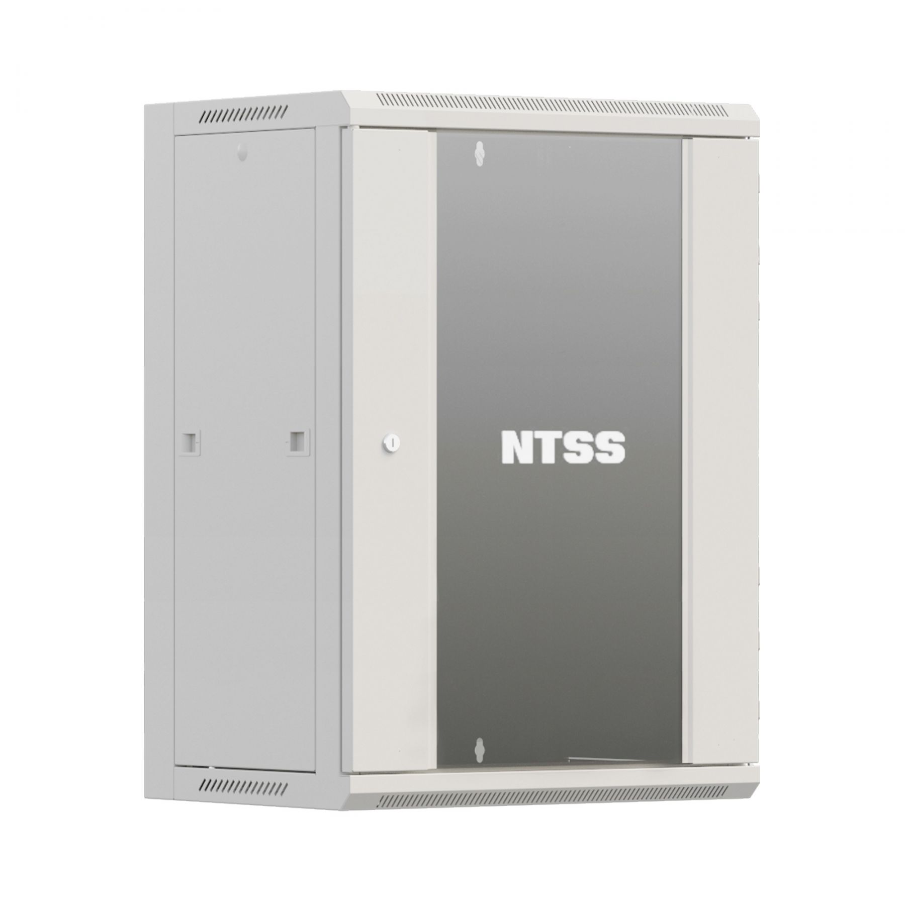 Шкаф настенный телекоммуникационный NTSS W 12U 600х450х635мм, 2 профиля 19, дверь стеклянная, боковые стенки съемные, задняя стенка, разобранный, серый RAL 7035