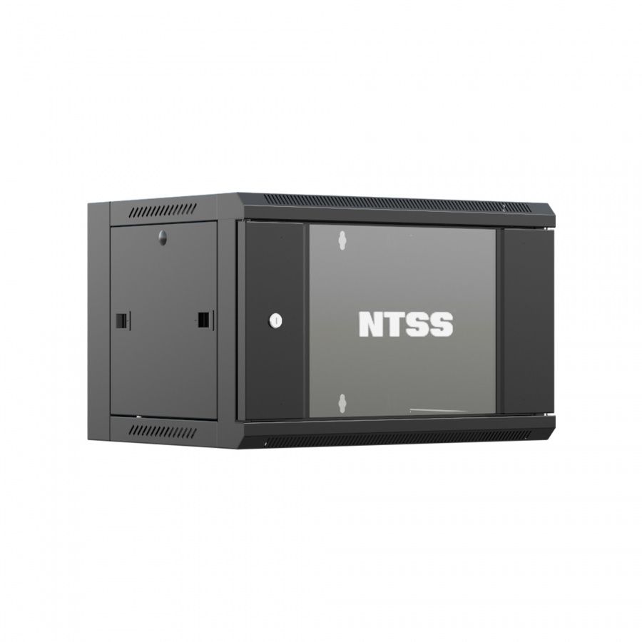Шкаф настенный телекоммуникационный NTSS W 9U 600х600х500мм, 2 профиля 19, дверь стеклянная, боковые стенки съемные, задняя стенка, разобранный, черный RAL 9005