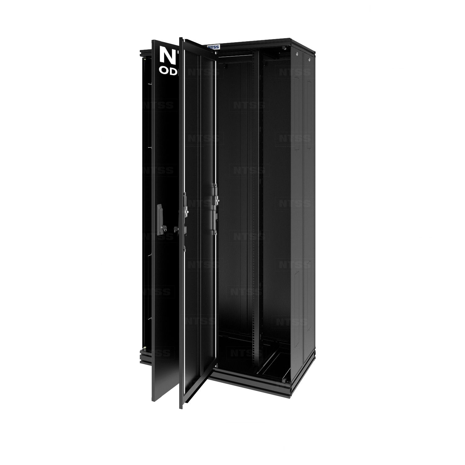 Шкаф оптический кроссовый NTSS ODF PROF 42U 900х500мм, модульные стенки, панели потолка и пола, двойные распашные глухие двери, черный RAL 9005
