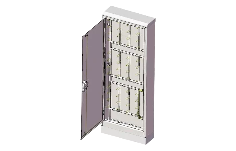 Предназначен для перехода с магистральных кабелей на распределительные кабели местных сетей. Номинальная емкость шкафа – 2400 пар.