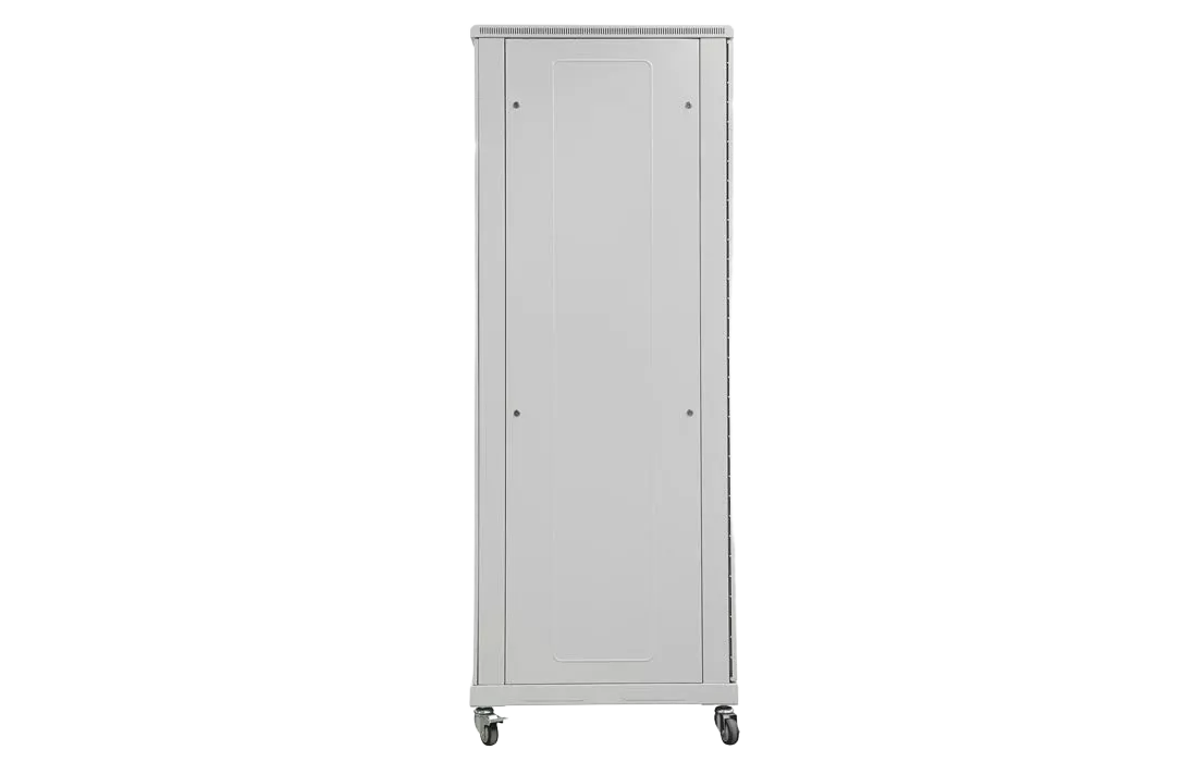 За счет элементов крепления каркас шкафа имеет повышенную жесткость. Распределенная вертикальная нагрузка до 600 кг. Стандартно шкаф комплектуется передней дверью, боковыми и задней стенками с замками.