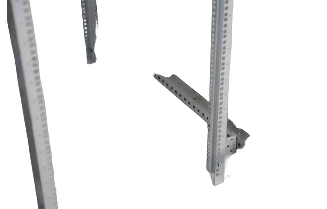 Вертикальные направляющие регулируются по глубине. Система заземления шкафа входит в стандартную комплектацию.