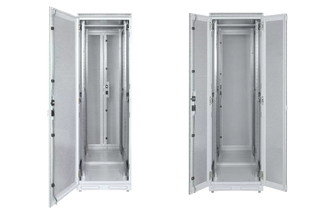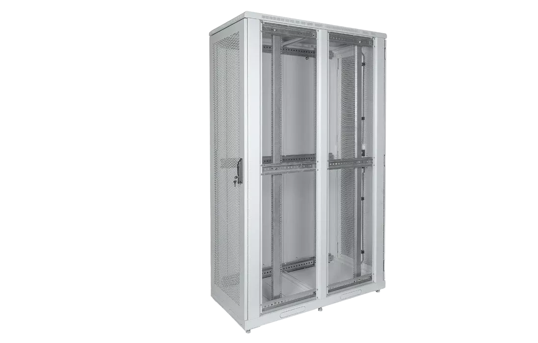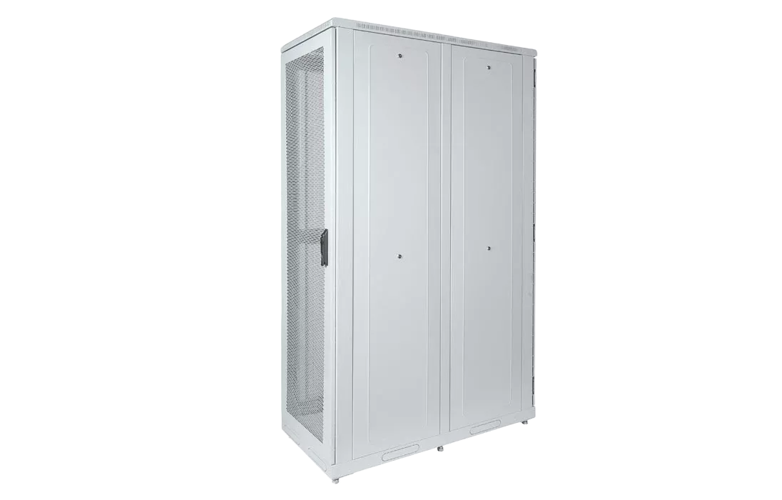 За счет элементов крепления каркас шкафа имеет повышенную жесткость. Распределенная вертикальная нагрузка до 1000 кг. Стандартно шкаф комплектуется: передней и задней дверями, боковыми стенками с замками.