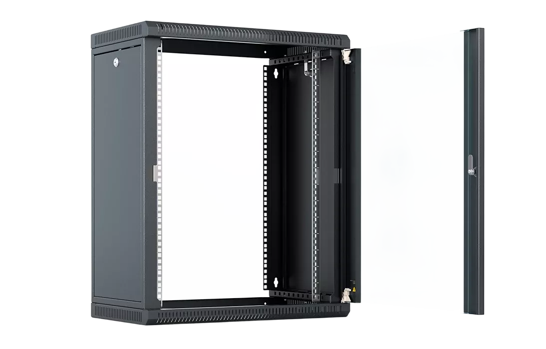 Шкаф телекоммуникационный настенный разборный со съемными боковыми стенками 19”,18U(600x550), ШТ-НСрМ-18U-600-550-С-Ч дверь стекло черный