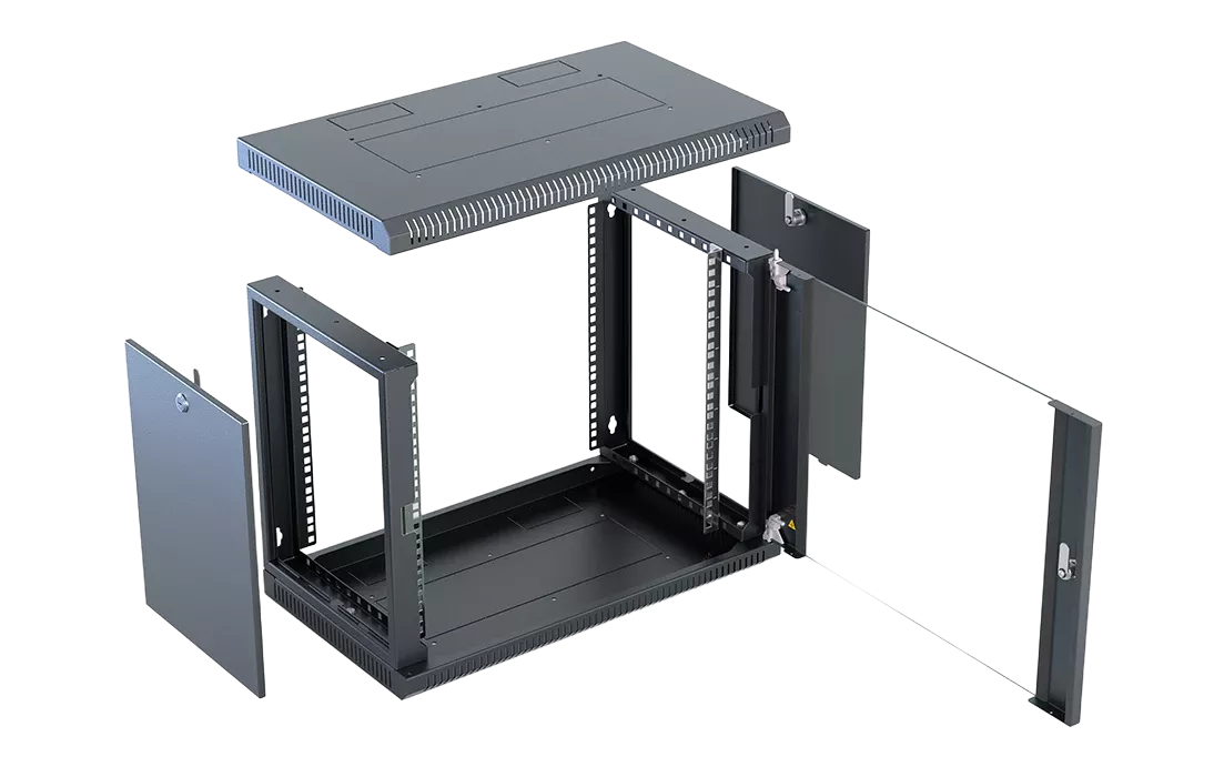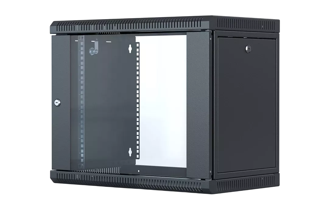 Шкаф телекоммуникационный настенный разборный со съемными боковыми стенками 19”,6U(600x550), ШТ-НСрМ-6U-600-550-С-Ч дверь стекло черный