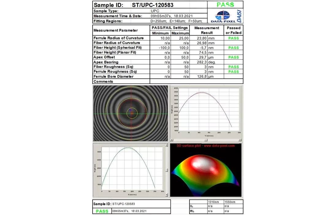 Высокое качество оптических шнуров серии ССД HS гарантируется 100% контролем качества оптических параметров шнуров. Типовое качество полировки торца ферулы приведено на фото с экрана интерферометра.