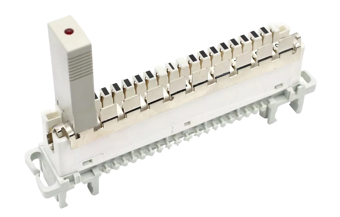 В качестве узлов стыка между парами линейных распределительных кабелей и проводкой или служебными цепями к абонентским устройствам используются однопарные модули абонентского ввода. Они устанавливаются на шине шириной 35 мм, соответствующей стандарту DIN. При этом обеспечивается возможность испытания и защиты линий.
