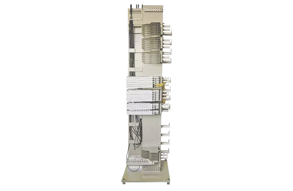 Конструктивной особенностью данного решения является монтаж и кросс-коммутация ОВ в поворотных кроссовых модулях, объединенных в кроссовые блоки. В модуле выделено место для укладки ОВ и размещения адаптеров (до 24 SC или DLC). В собранном состоянии модули размещаются в блоке горизонтально, при этом фронтально расположенные адаптеры закрыты передней стенкой модуля. При повороте модуля обеспечивается удобный доступ к адаптерам и пигтейлам. Для монтажа модуль свободно снимается с блока за счет запаса длины транспортных трубок. В стойке ВОКС-ФП-СТ используются кроссовые блоки на 6 кросс-модулей ёмкостью 144 порта SC или на 4 кросс-модуля ёмкостью 96 портов SC. Всего в стойке ВОКС-ФП-СТ устанавливается 9 кроссовых блоков на 6 кросс-модулей или 12 кроссовых блоков на 4 кросс-модуля.