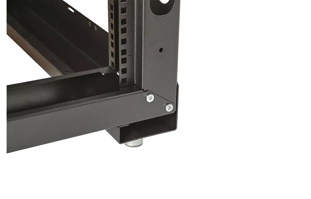 Универсальные стойки 19" имеют полностью разборную двухрамную конструкцию, каркас повышенной жесткости скреплен болтами, материал сталь 2 мм и 1.5 мм. Для удобства монтажа и коммутации оборудования предусмотрена перфорация по всей длине рамы, широкий спектр аксессуаров. Двухрамная универсальная стойка 19" имеет регулировку полезной глубины – 750 мм, 650 мм, 550 мм, 450 мм. Возможно крепление стоек между собой через вертикальный кабельный органайзер. Стойка устанавливается на регулируемые винтовые опоры (ножки), компенсирующие неровности пола, или ролики.
