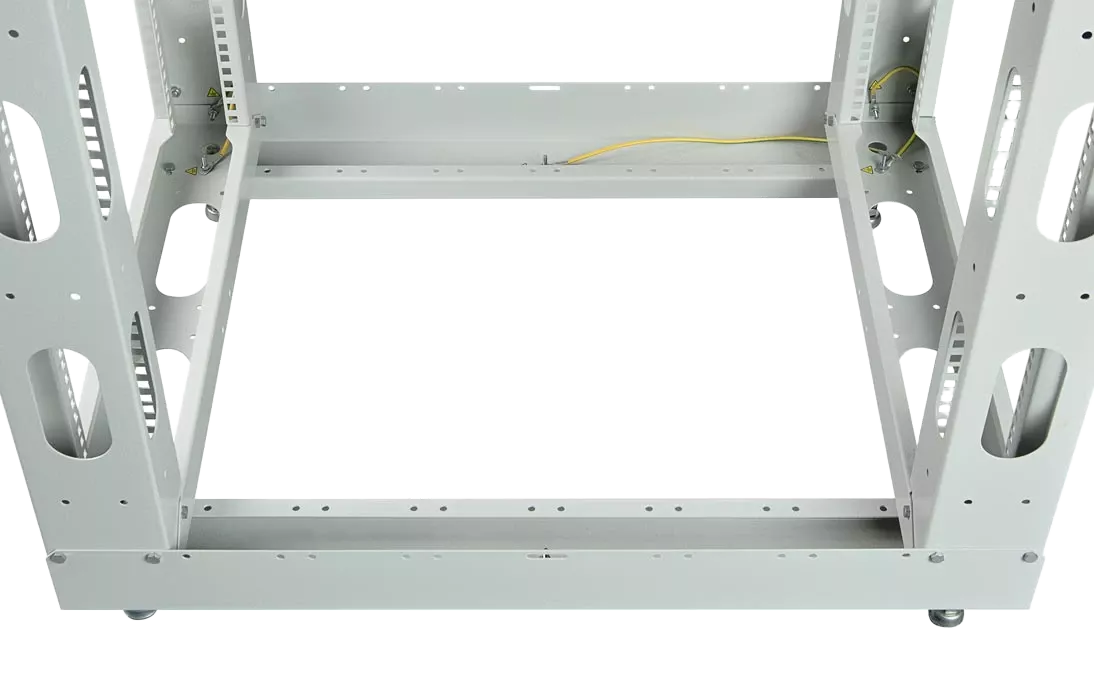 Универсальные стойки 19" имеют полностью разборную двухрамную конструкцию, каркас повышенной жесткости скреплен болтами, материал сталь 2 мм и 1.5 мм. Для удобства монтажа и коммутации оборудования предусмотрена перфорация по всей длине рамы, широкий спектр аксессуаров. Двухрамная универсальная стойка 19" имеет регулировку полезной глубины – 750 мм, 650 мм, 550 мм, 450 мм. Возможно крепление стоек между собой через вертикальный кабельный органайзер. Стойка устанавливается на регулируемые винтовые опоры (ножки), компенсирующие неровности пола, или ролики.