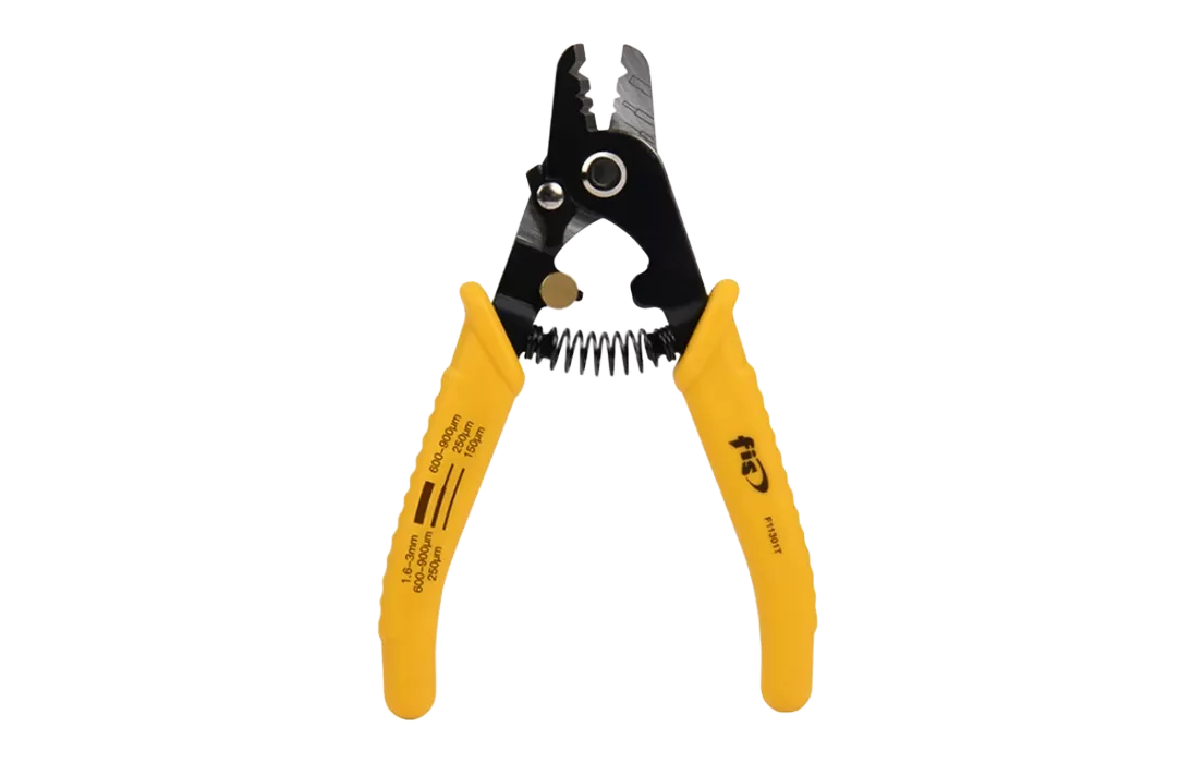 FT11301T - стриппер для работы с оптическим волокном, имеющий три отверстия для снятия оболочек различного диаметра: 1ое – для удаления 2-3 мм буфера, 2ое- для удаления 900мкм буфера и 3е – для снятия 250мкм лакового покрытия волокна.