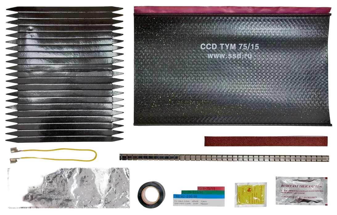 Каждая муфта КМТ представляет собой комплект монтажных деталей и материалов, обеспечивающих монтаж прямой (соединительной) муфты.