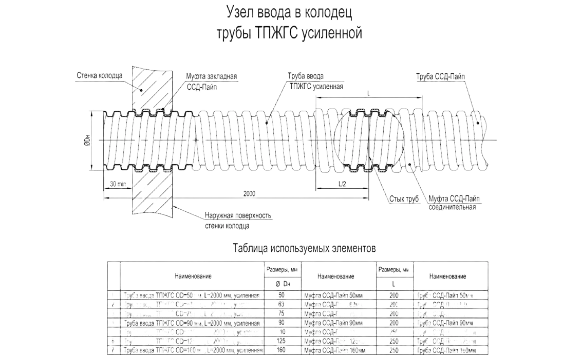 Представляет собой отрезок трубы ССД-Пайп с увеличенной толщиной стенки. Труба ввода совместима со всеми аксессуарами для труб ССД-Пайп.