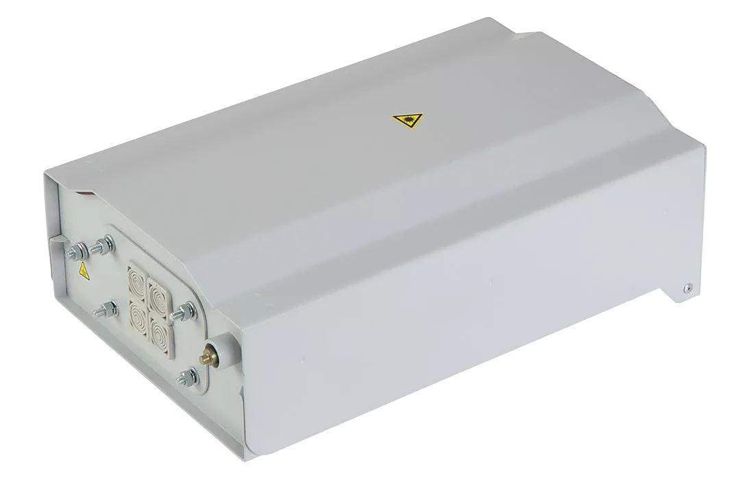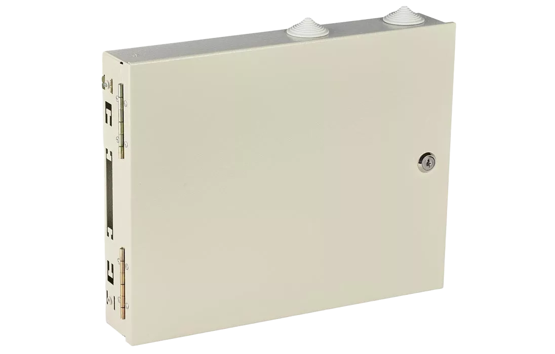 Корпус изготовлен из металла и окрашен порошковой краской. Внутри корпуса установлена кассета для сварки оптических волокон и адаптерные планки для размещения адаптеров SC типа.