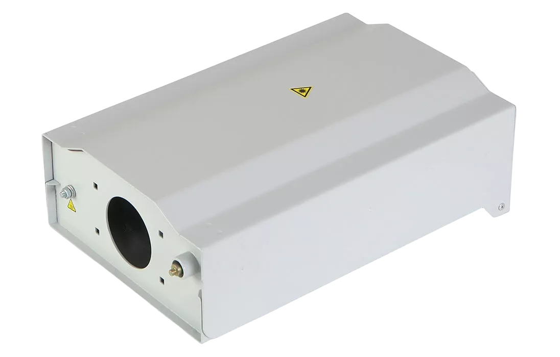 Корпус изготовлен из металла и окрашен порошковой краской. Внутри корпуса установлена кассета для сварки оптических волокон, адаптерная планка на две розетки SC типа для подключения входных разъемов сплиттерных модулей, а также панель для крепления универсальных сплиттерных модулей СМ3 (УСМ).