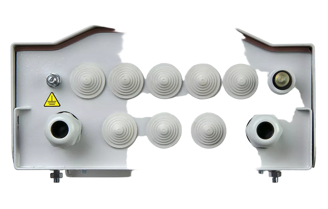 Кабельные вводы расположены на нижней стенке корпуса. Кросс комплектуется двумя видами сальников для ввода распределительных и абонентских кабелей. Резьбовая шпилька для подключения проводов заземления так же расположена на нижней стенке кросса. Два кронштейна для крепления ЦСЭ расположены на боковых стенках. Для крепления вводимых кабелей на задней стенке кросса расположена металлическая гребёнка с Т-образными ламелями.