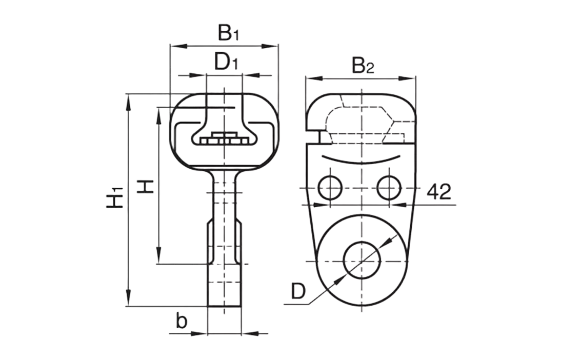 Ушко однолапчатое предназначено для соединения стержня подвесного изолятора или серьги с другой линейной арматурой.