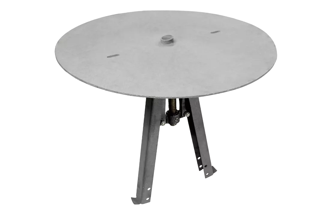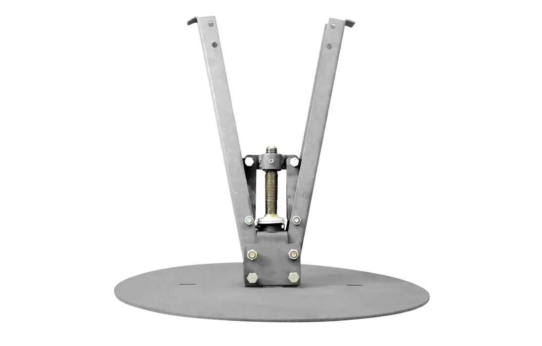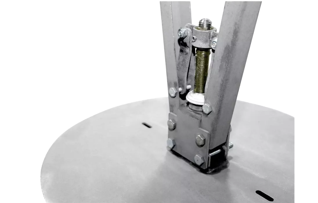 Устройство УЗНК представляет собой стальную плиту толщиной 5 мм круглой формы, оснащенную рычажно-винтовым механизмом. Рычажно-винтовой механизм с помощью болтов с самоконтрящимися гайками соединяется с закрепленным на плите швеллером. Рабочие узлы и крепежные детали устройства УЗНК изготовлены из нержавеющей стали и латуни. Для придания высокой коррозийной стойкости стальная крышка покрывается цинксодержащей порошковой смесью методом термодиффузионного цинкования (ТДЦ).