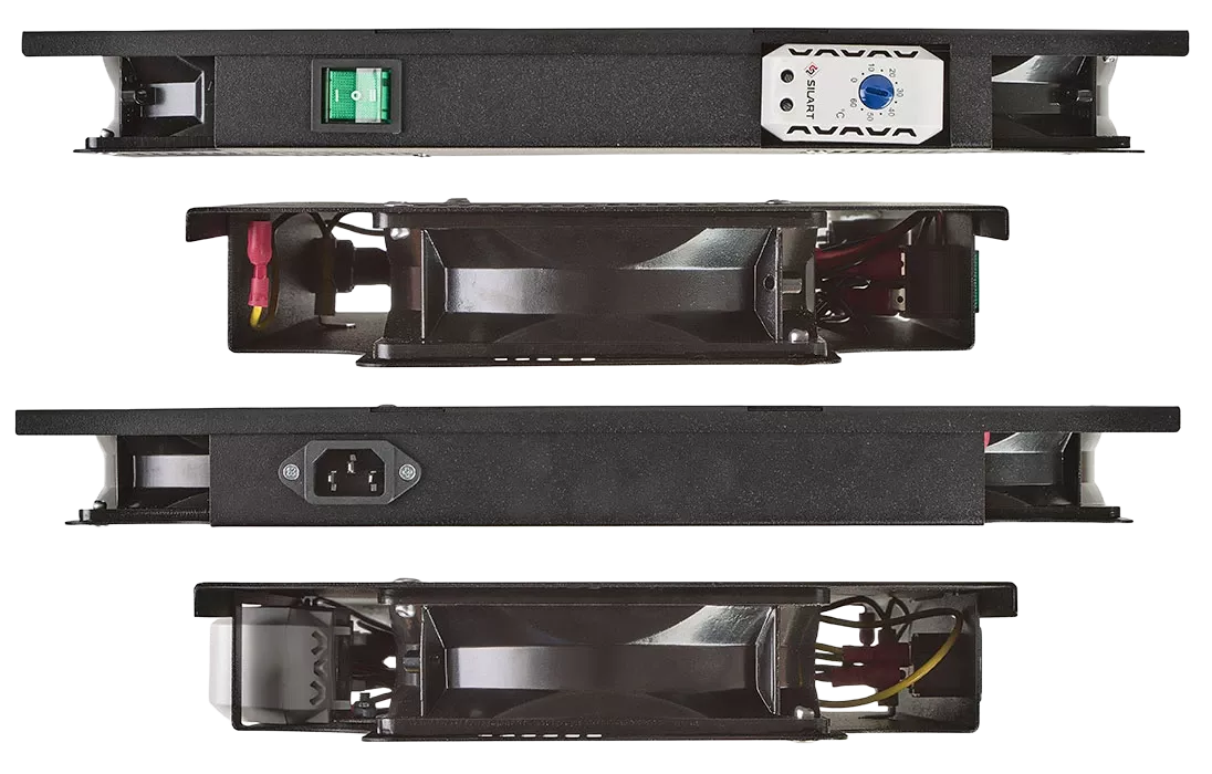 В вентиляторных модулях установлен переключатель с тремя режимами: включен постоянно, выключен, включение от термодатчика при заданной температуре в диапазоне от 0 до 60 °С.