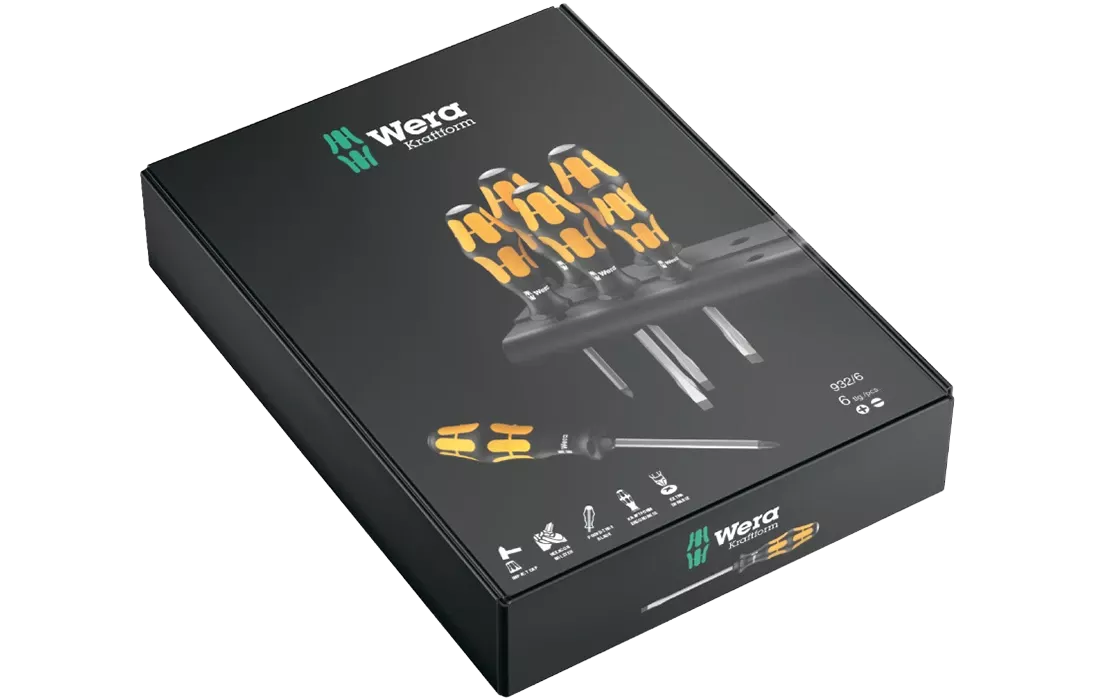 WE-018282 932/6 Набор отвёрток силовых с подставкой, 6 пр., PH 1x80/2x100, SL 0.6x3.5x80/0.8x4.5x90/1x5.5x100/1.2x7.0x125