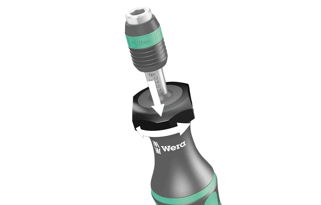 WE-074701 7441 Kraftform Отвёртка-битодержатель динамометрическая 1.20-3.00 Нм, патрон Rapidaptor, 1/4" D6.3/F6.3